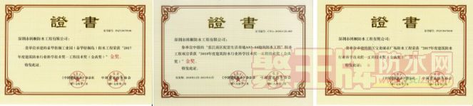 具有国内建筑防水工程领域权威的荣誉奖项