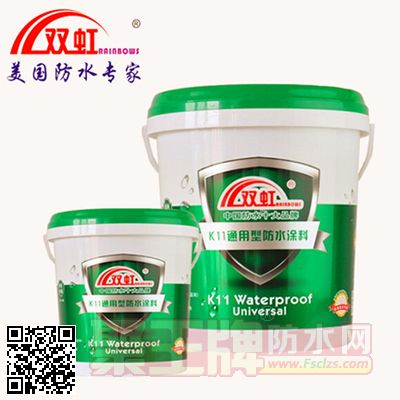 双虹防水招商产品——双虹K11通用型防水涂料是一种由独特配方调制而成的聚合物改性水泥基防水材料。耐磨性好,粘结性佳,干固后可采用合适的瓷砖胶粘贴各种饰面瓷砖;良好的透气性; 无毒、无害,可用于水池和鱼池等。