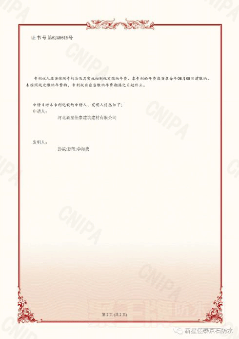 专利创新不仅展示了新星佳泰京石防水的研发实力,也是创新活力的重要体现。