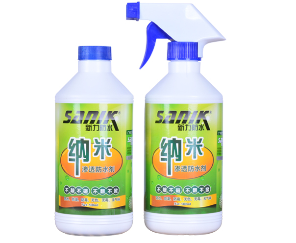 2.用喷雾器或毛刷在干燥的基面(墙面等)纵横连续三遍,中间不要间歇,直接喷涂于物体表面,一次性喷足量。每千克纳米防水剂可喷涂墙面2~3平方米