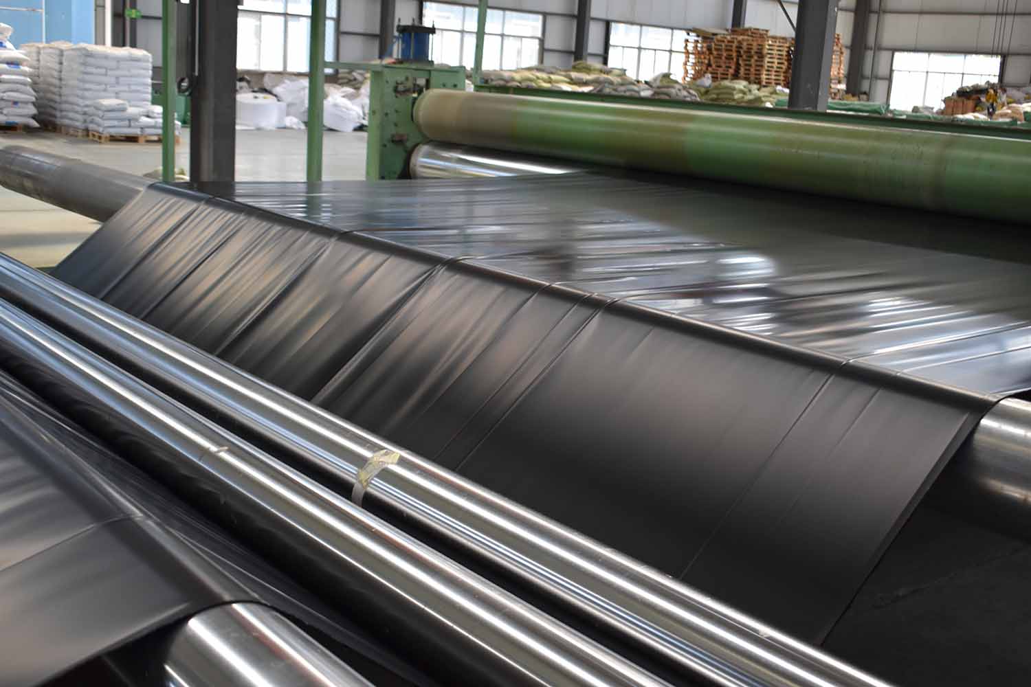 hdpe两布一膜/复合膜施工注意:施工时,应避免石块、重物直接砸在土工膜上,边施工、边铺设膜、边覆盖保护层。