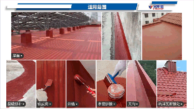 适用范围: 混凝土屋面、金属屋面、琉璃瓦屋面。天面、地下室、楼地面、停车场、外墙、隧道及金属屋面的防水处理、维修补漏等;亦可用于聚氨酯、卷材裂缝上的防 水维修。