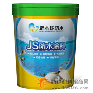 JS聚合物防水涂料是一种改性无毒乳液,该乳液与专用粉料充分混合后,形成一层坚韧的、富有弹性的防水膜,此膜与混凝土和灰浆具有良好的粘附性、能与之紧密牢固结合,从而阻止水的渗透。