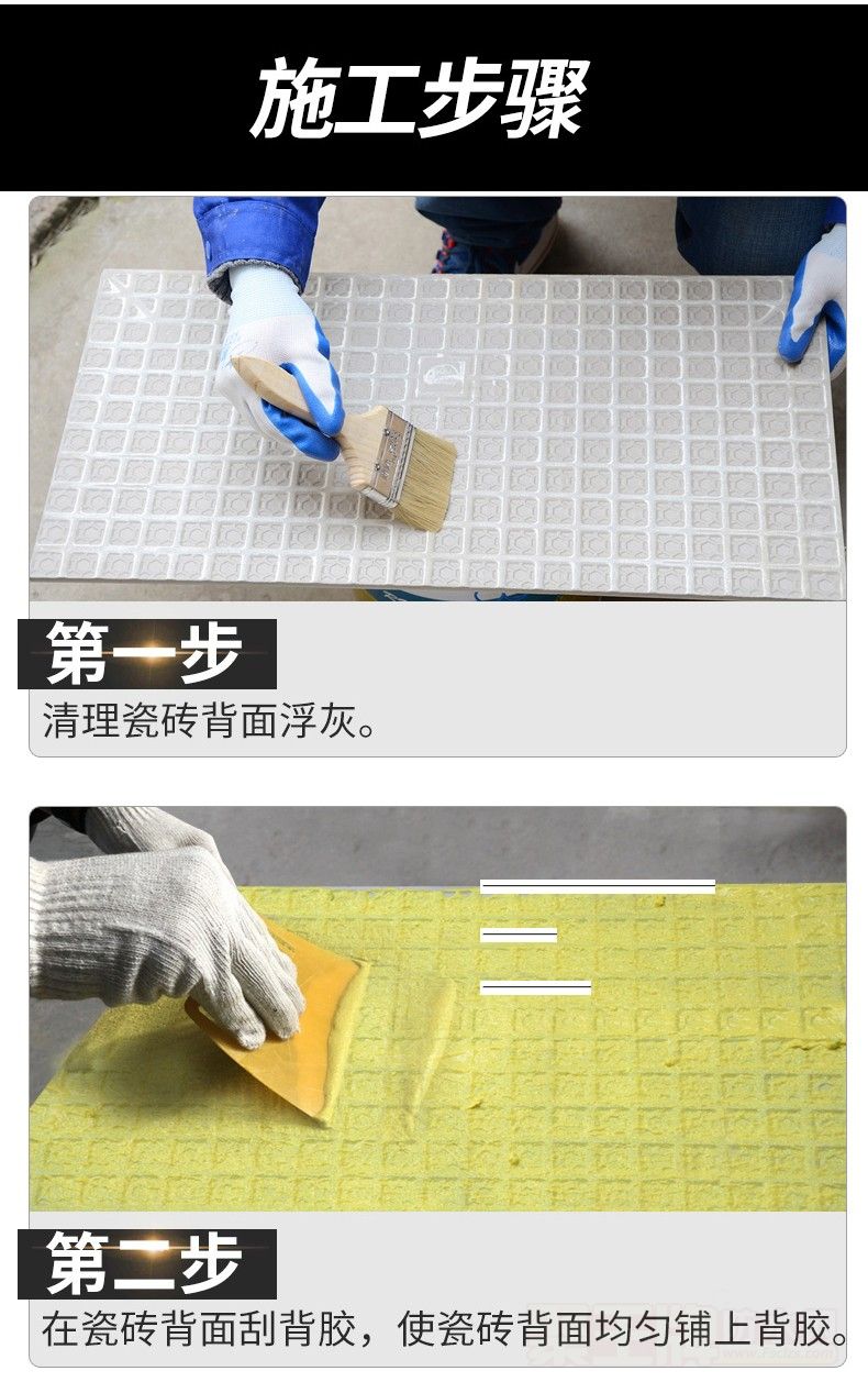 膏状瓷砖背胶的粘贴瓷砖规格比较大,铺设规格超过800mmX800mm的瓷砖。