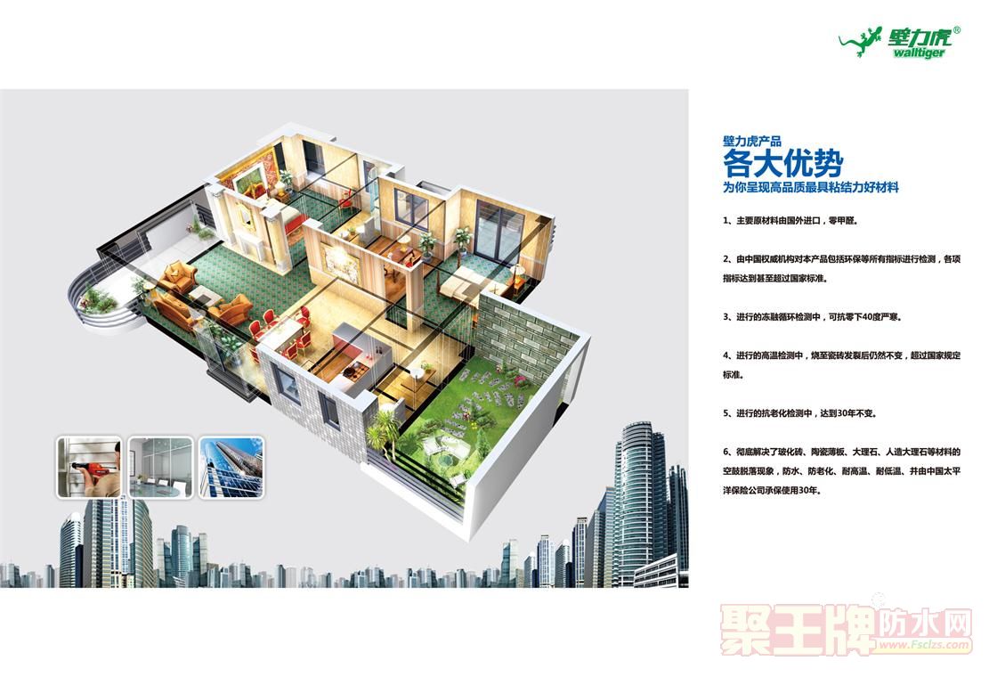 广东壁力虎强力液体瓷砖粘结剂品牌隶属于佛山市大千饰界建材有限公司,总部坐落于中国陶都-佛山,企业旗下现有广东壁力虎建材辅料生产基地(集团总部)、湖南壁力虎建材辅料生产基地,以及未来规划在国内建成六大生产服务基地。长期以来,壁力虎专注于建筑涂料与水性环保涂料的研发、生产和销售,工业涂料、防水涂料、装修辅料、服务等领域。壁力虎以为消费者营造健康的家居环境为己任,“关注品质,关爱社会”,致力于在业务的各个环节成为放心涂料的倡导者和践行者,以保证客户、施工者和生产工人的健康和安全。在这种理念的引导下,壁力虎推出了环保型家装K11防水系列、强力瓷砖粘结剂背涂胶产品系列、卫浴间回填宝产品系列、环保型SBS液体卷材防水,金属防水,反射隔热防水,外墙透明防水,墙固地固系列,固沙宝返沙克星产品,美缝剂,晶瓷胶,填缝剂,以及免砸砖堵漏剂等极富竞争力的系列产品,成为了装修辅料领域的领导者和风向标,并因此成为了中国瓷砖胶,防水行业领军品牌。