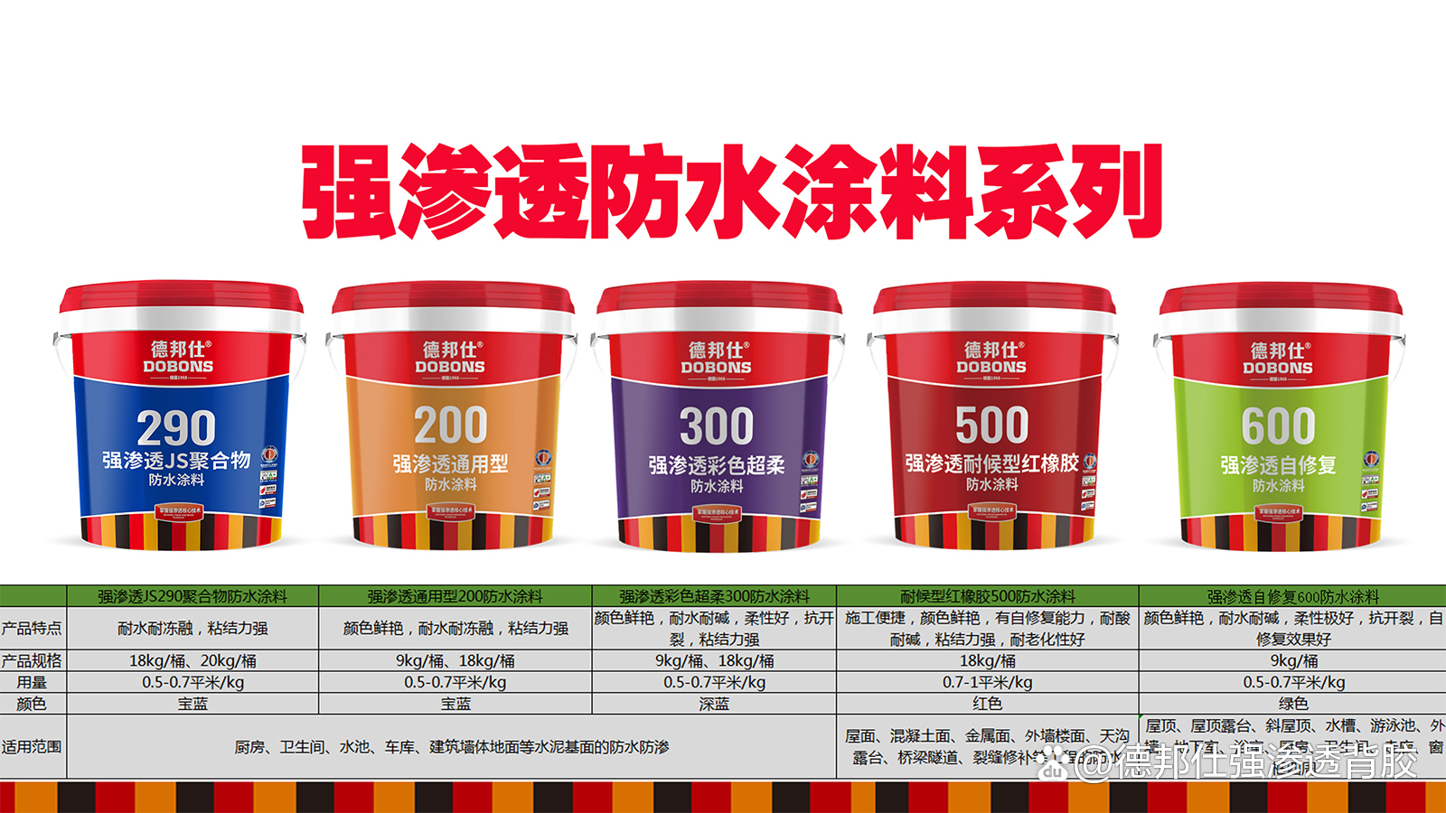 适用于外墙、地下室、桥梁、隧道等,尤其适合清水混凝土、瓷砖饰面等需保持外观的基材。