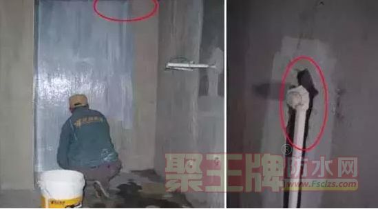 首先将墙面水电开槽用水泥封堵,进行基层清理,防水涂料要涂满,与基层结合牢固,无裂纹、无气泡、无脱落,涂刷高度要一致。