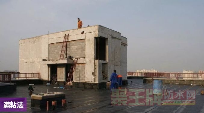 满粘的卷材与基层结合牢固,避免了卷材的向下滑落。虽然也可以采用机械固定的方法来固定卷材,但因不能全面固定,所以还会遇到上面所提到的卷材被风刮起的缺陷。