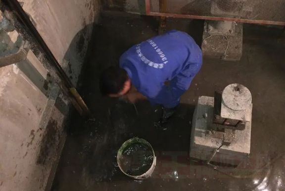 土建施工时,底板的大量积水没有排干、排净,而直接把混凝土倒入水中,造成底板四周出现很多蜂窝、麻面、孔洞、硫松。与底板交接不严实,电梯井底部位置处在正负零水位线下3m,地下水压较大,地下水通过孔洞、麻面、裂缝及疏松处渗漏至底坑,造成电梯井积水。