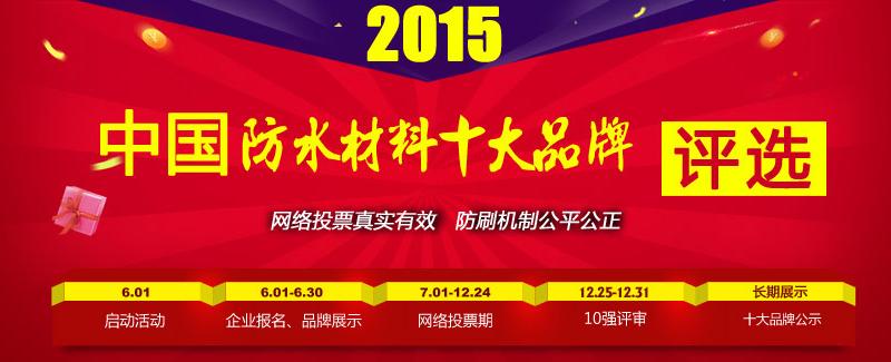 2015年6月1日,“2015中国防水材料十大品牌”网络评选活动正式启动。本着科学、公开、公平、公正的原则,中国防水材料招商网将强势联合线上与线下多家媒体,着力企业与消费者互动、全面的通过互联网平台相结合的评选活动,旨在引领行业发展方向,推动防水材料品牌突围困局。