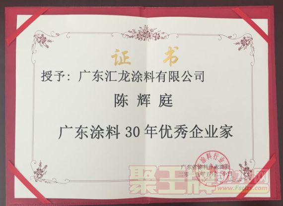 5月19日-5月20日,以“同心同德 共创共享”为主题的广东省涂料行业协会30周年庆典暨2019广东涂料产业发展大会在广东鹤山隆重举行。政府相关领导及来自全国涂料上下游行业的精英相聚,共同见证辉煌时刻。在表彰大会上,汇龙涂料获得“广东涂料30强企业”、“广东涂料30年优秀木器涂料品牌”荣誉。董事长陈辉庭被授予“广东涂料30年优秀企业家”称号。