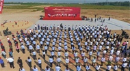 紧接着,全场气氛到达最高潮,伴随着激昂的音乐、震天的礼炮和现场热烈的掌声与欢呼声,禹城市领导与各公司代表及现场嘉宾共同挥铲,为产业园奠基石深情培土,象征着产业园坚实稳固、根基永恒的奠基石,在禹城大地磐石落定。