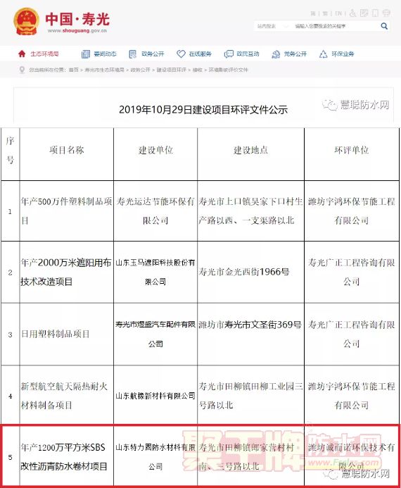 近日,山东省寿光市生态环境局公布关于2019年10月29日建设项目环评的情况。公告显示,山东特力固防水材料有限公司(以下简称:特力固防水)“新建年产1200万㎡的SBS改性沥青防水卷材项目”通过批复。