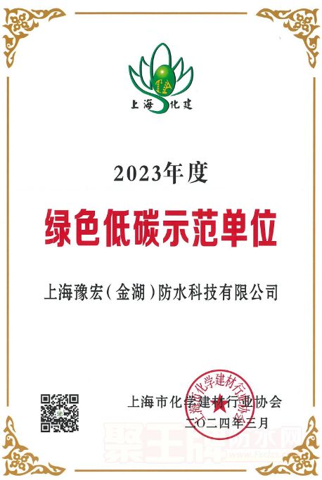 近日,上海市化学建材行业协会第八届第三次会员代表大会召开,上海豫宏集团全资子公司上海豫宏(金湖)防水科技有限公司荣获“2023年度绿色低碳示范单位”称号。