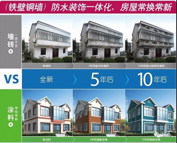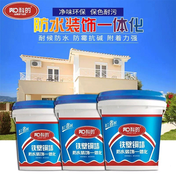 科的【铁壁铜墙】选用优异原料,采用优异配方,全新采用紫外交联技术,是双组份防水装饰一体化外墙全效水性漆,具有防水、防霉、抗碱、超强附着力和超长的耐候性,施工及其简单,可在水泥基面上一次成型,省时环保,是普通乳胶漆的最佳代替产品。
