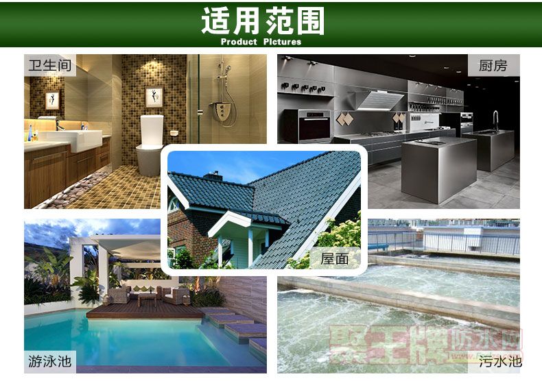 1、屋面:混凝土、斜屋面、天沟、雨篷及各种不规则屋面、地下建筑、混凝土内墙、地板、电梯坑、地下隧道、沉井、管道等。