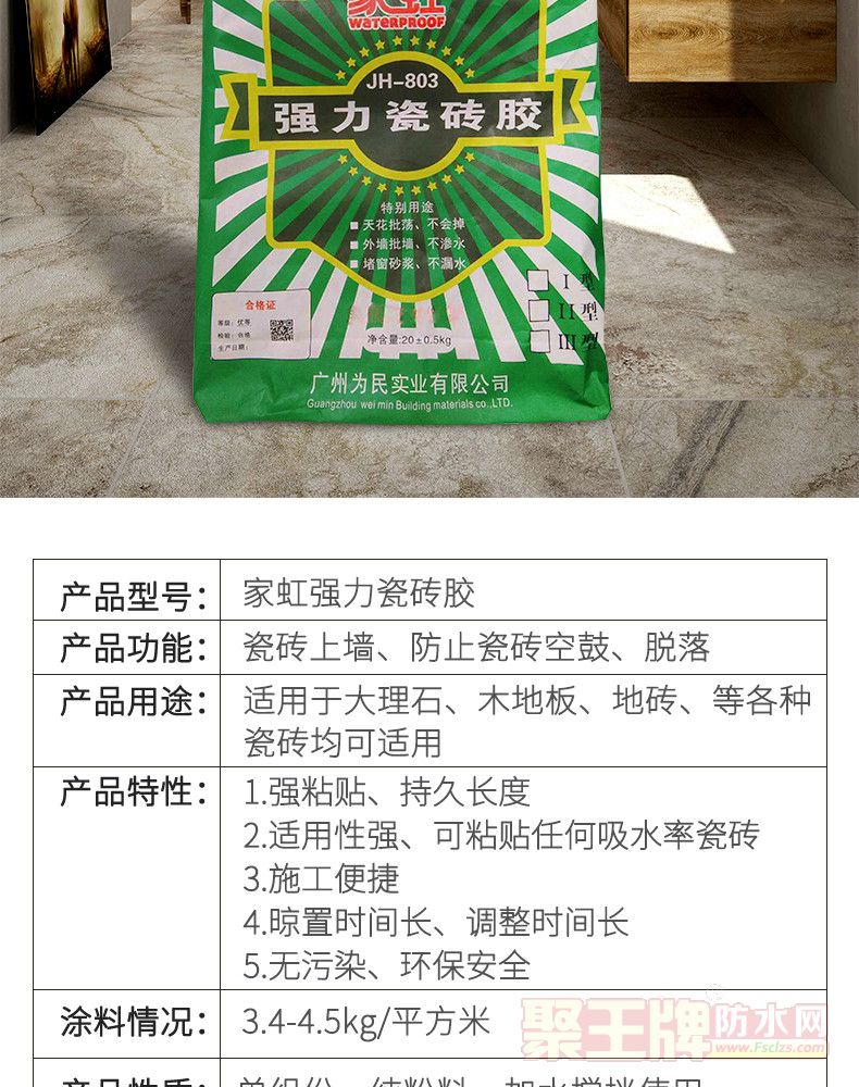 广州为民建材有限公司作为美国家虹(中国)建材有限公司在大陆授权子公司,结合国内的实际情况,生产高品质的建筑化工产品。产品覆盖建筑、装饰材料以及防水材料等领域,专业从事建筑防水材料、防水腻子、瓷砖胶的生产和销售。并研发出内外墙防水系列产品以及提供防水工程的技术服务,依托总公司的高新技术研发出具有世界*先水平的各大防水系列产品,其性能指标均达到或超过国家检测标准。是国家高新技术企业、我国防水行业值得信懒的企业。