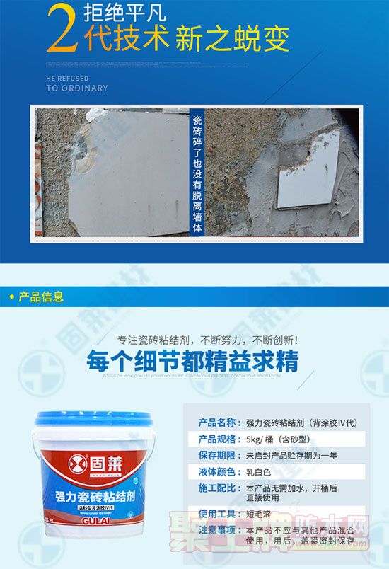 使用范围:广泛用于旧墙翻新、粘贴瓷砖、玻化砖、玻璃马赛克、大理石等