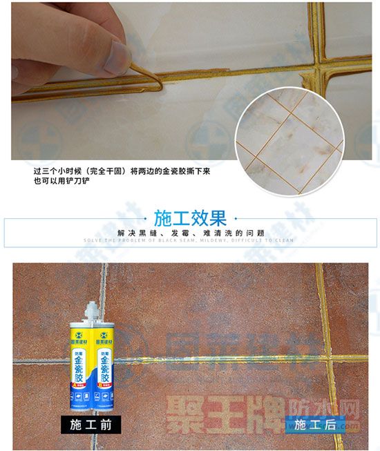 4、打胶1小时后小心撕掉美纹纸,清除周边的胶体,擦去余料,擦亮瓷砖面,胶体在初固化1小时前不得碰触。