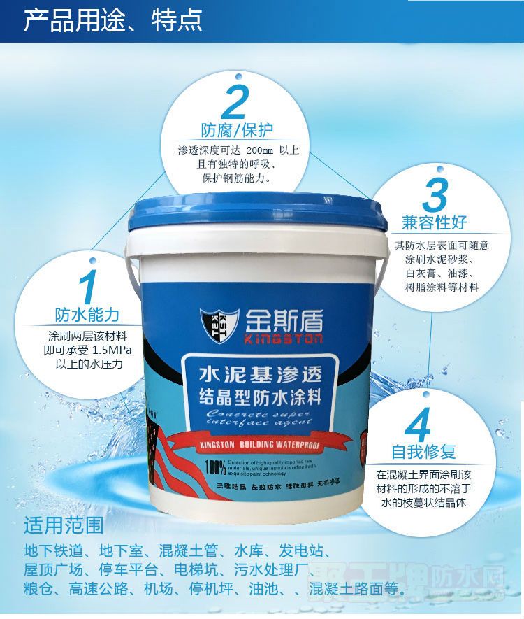 金斯盾水泥基渗透结晶型防水涂料代理品牌