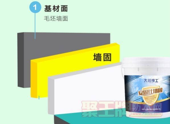 墙固用于提高混凝土墙面与腻子层的粘接度,有效避免因墙面浮尘、污垢等导致的墙面装饰后期空鼓、分层现象。净含量:10kg、18kg桶装。